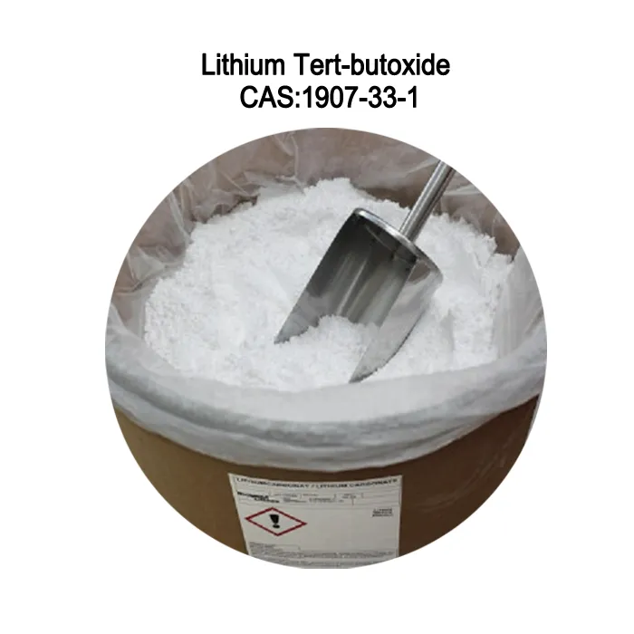 Litijum terc{0}}butoksid (C4H9OLi)ima izgled bijelog ili blijedožutog kristalnog praha, koji je vrsta blage baze koja se primjenjuje u organskoj sintezi. Razlaže se apsorpcijom vode i rastvara se u organskim rastvaračima kao što su toluen, heksan i tetrahidrofuran.